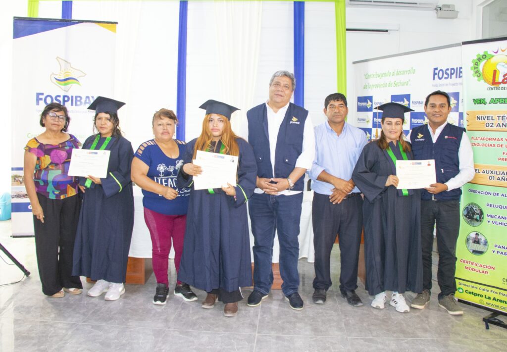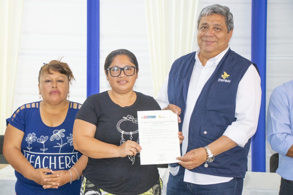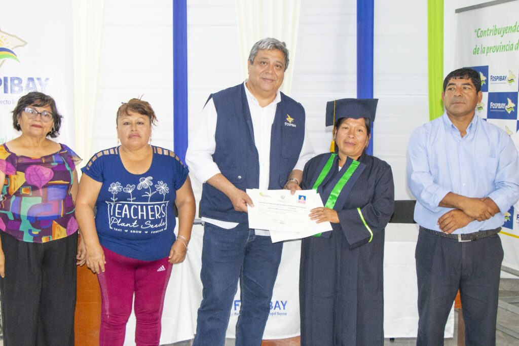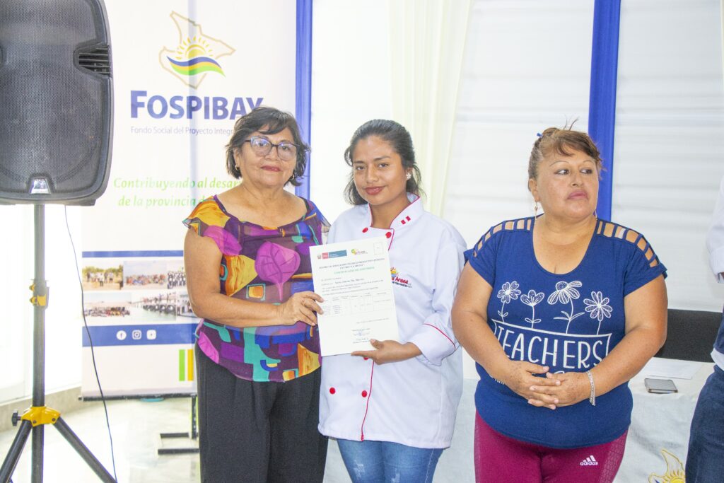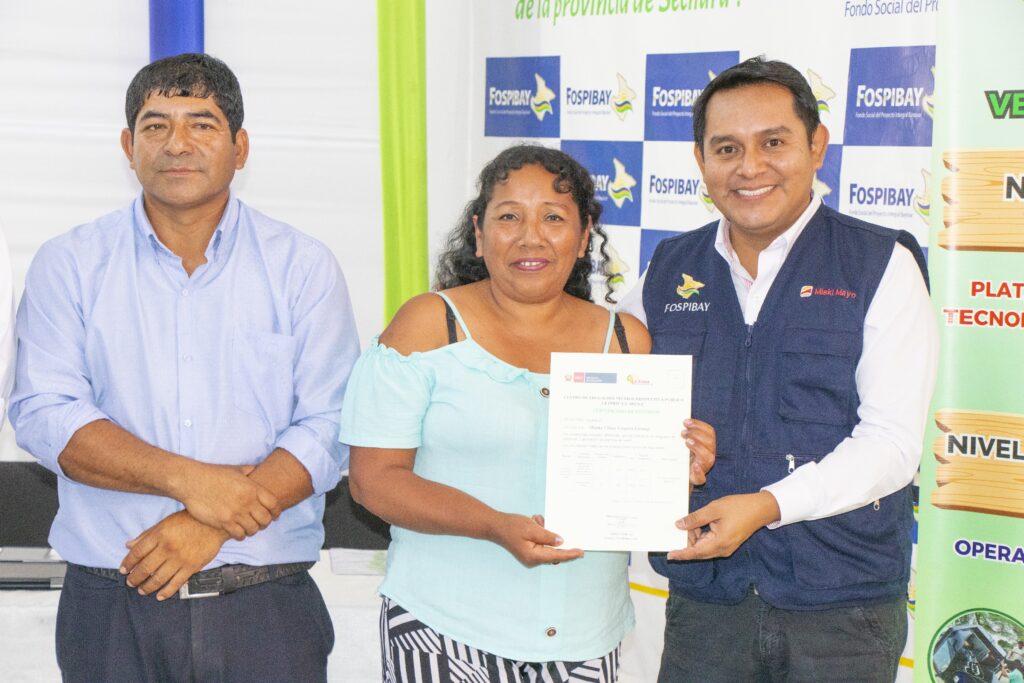 La ceremonia contó con la participación del gerente y equipo técnico del FOSPIBAY, autoridades locales, Miski Mayo, el equipo técnico del proyecto y, principalmente, de los beneficiarios, quienes expresaron su satisfacción y agradecimiento por esta valiosa oportunidad de formación que contribuirá a mejorar sus condiciones laborales y económicas.