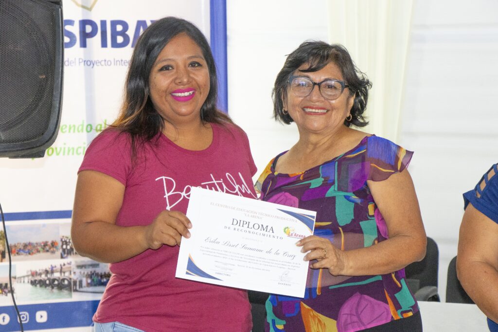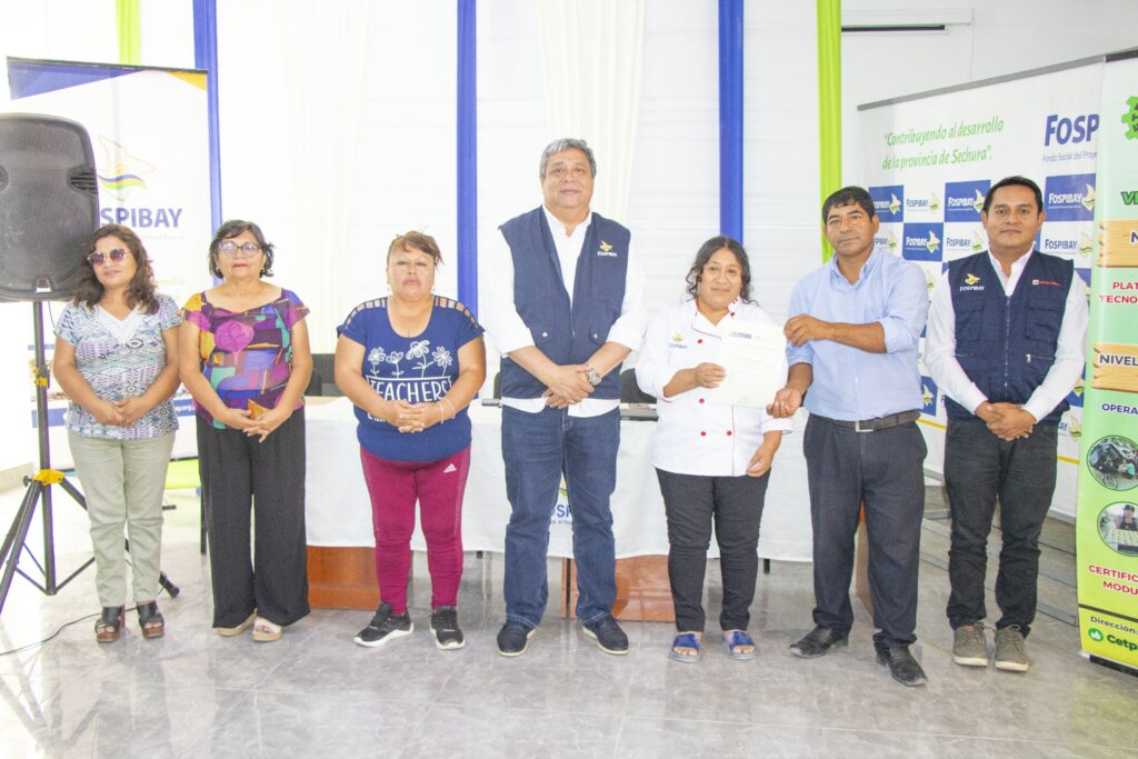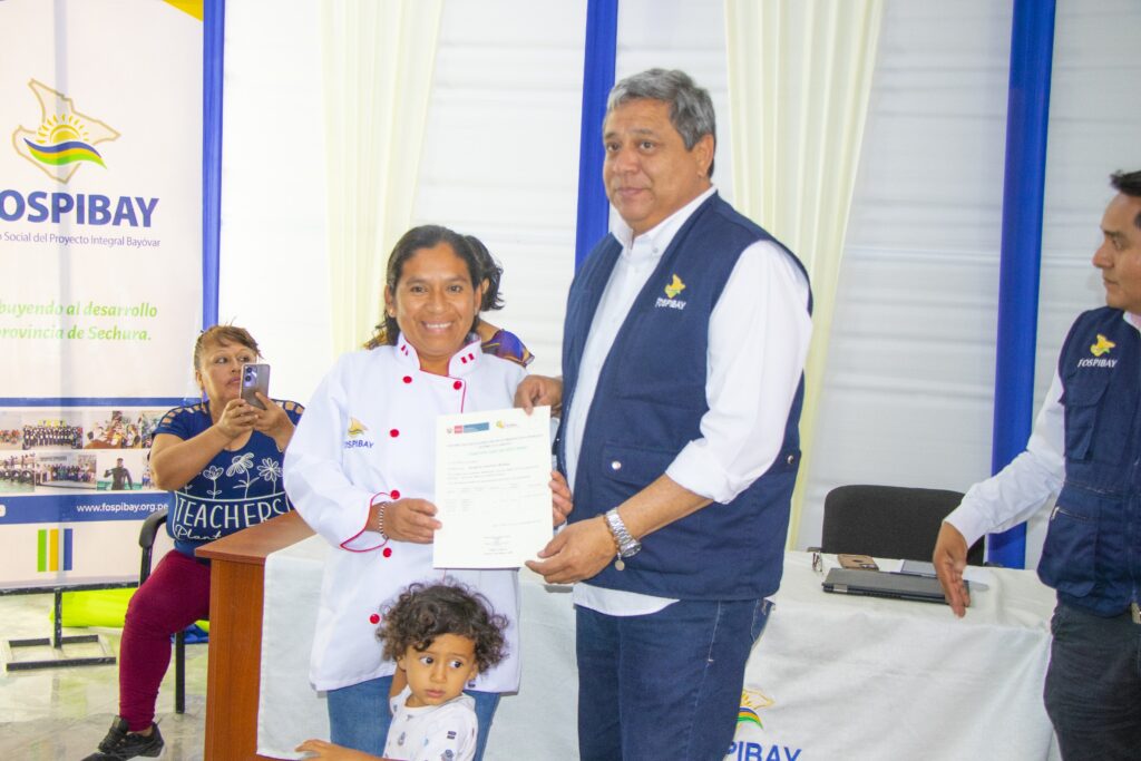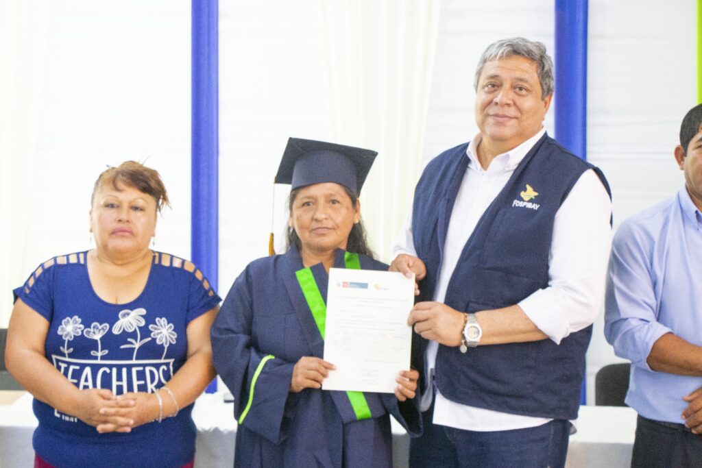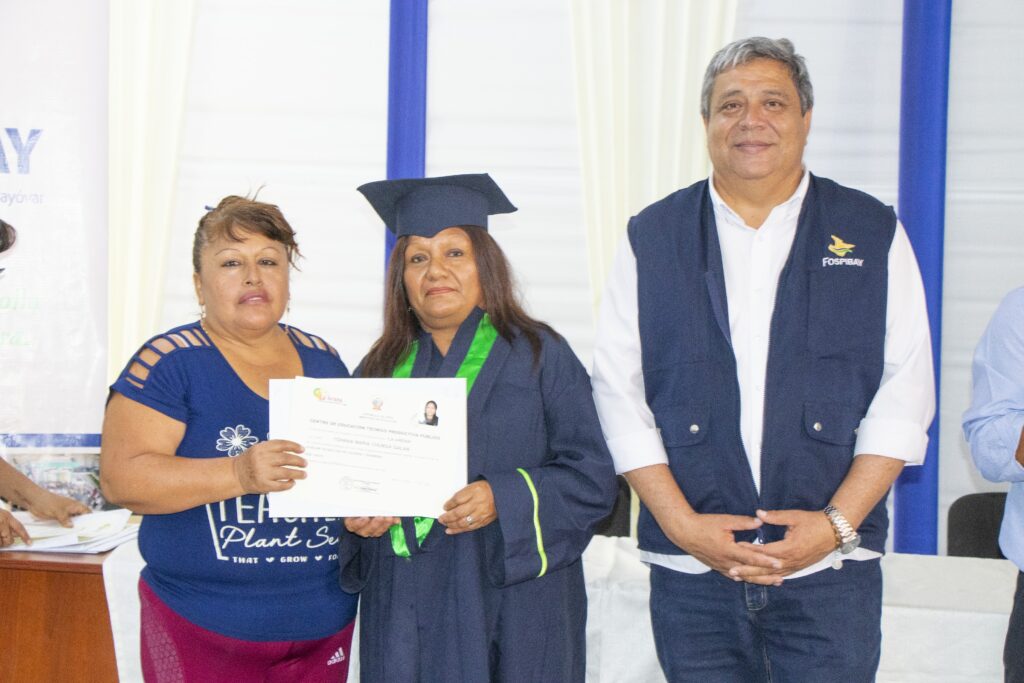 La ceremonia contó con la participación del gerente y equipo técnico del FOSPIBAY, autoridades locales, Miski Mayo, el equipo técnico del proyecto y, principalmente, de los beneficiarios, quienes expresaron su satisfacción y agradecimiento por esta valiosa oportunidad de formación que contribuirá a mejorar sus condiciones laborales y económicas.