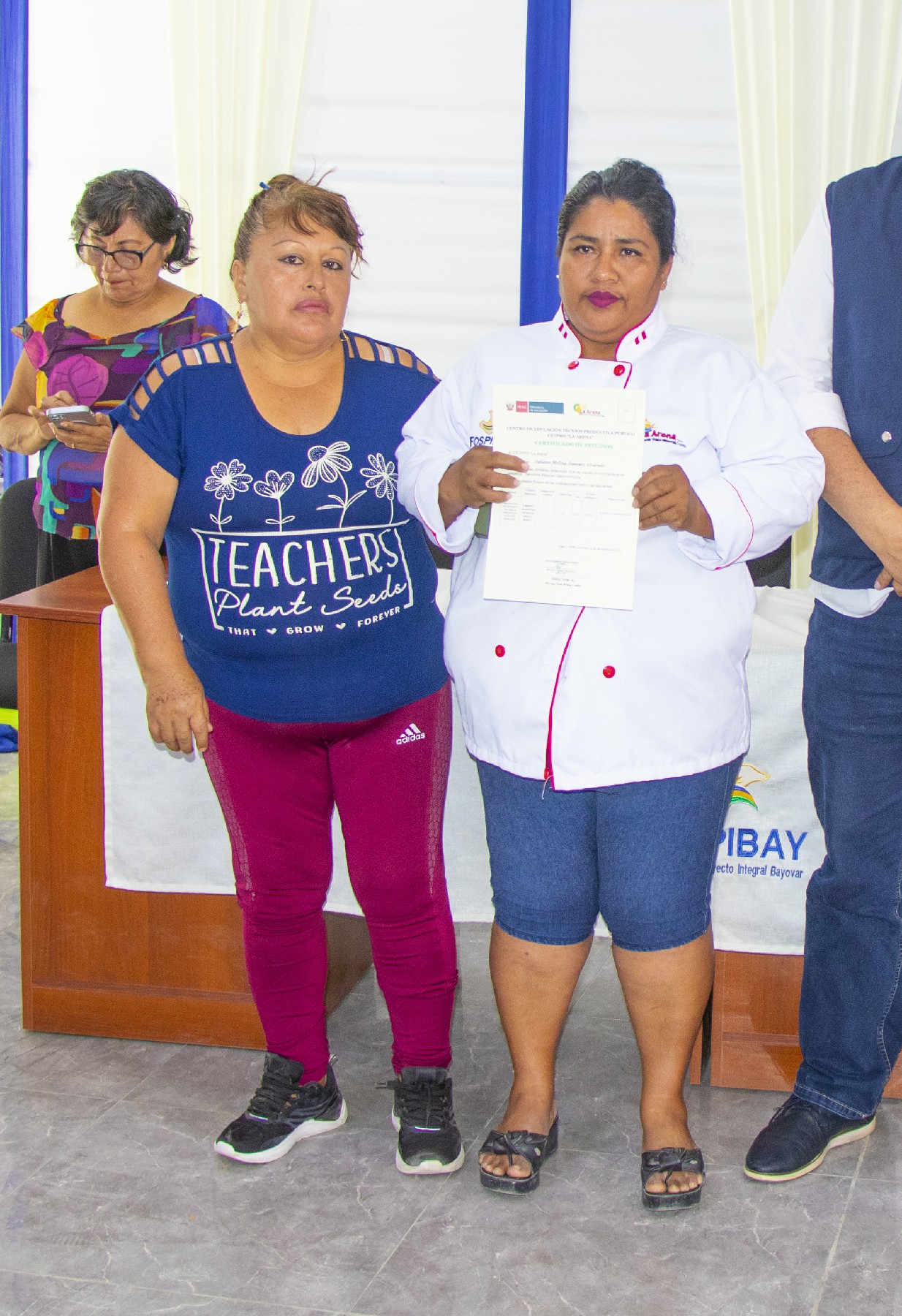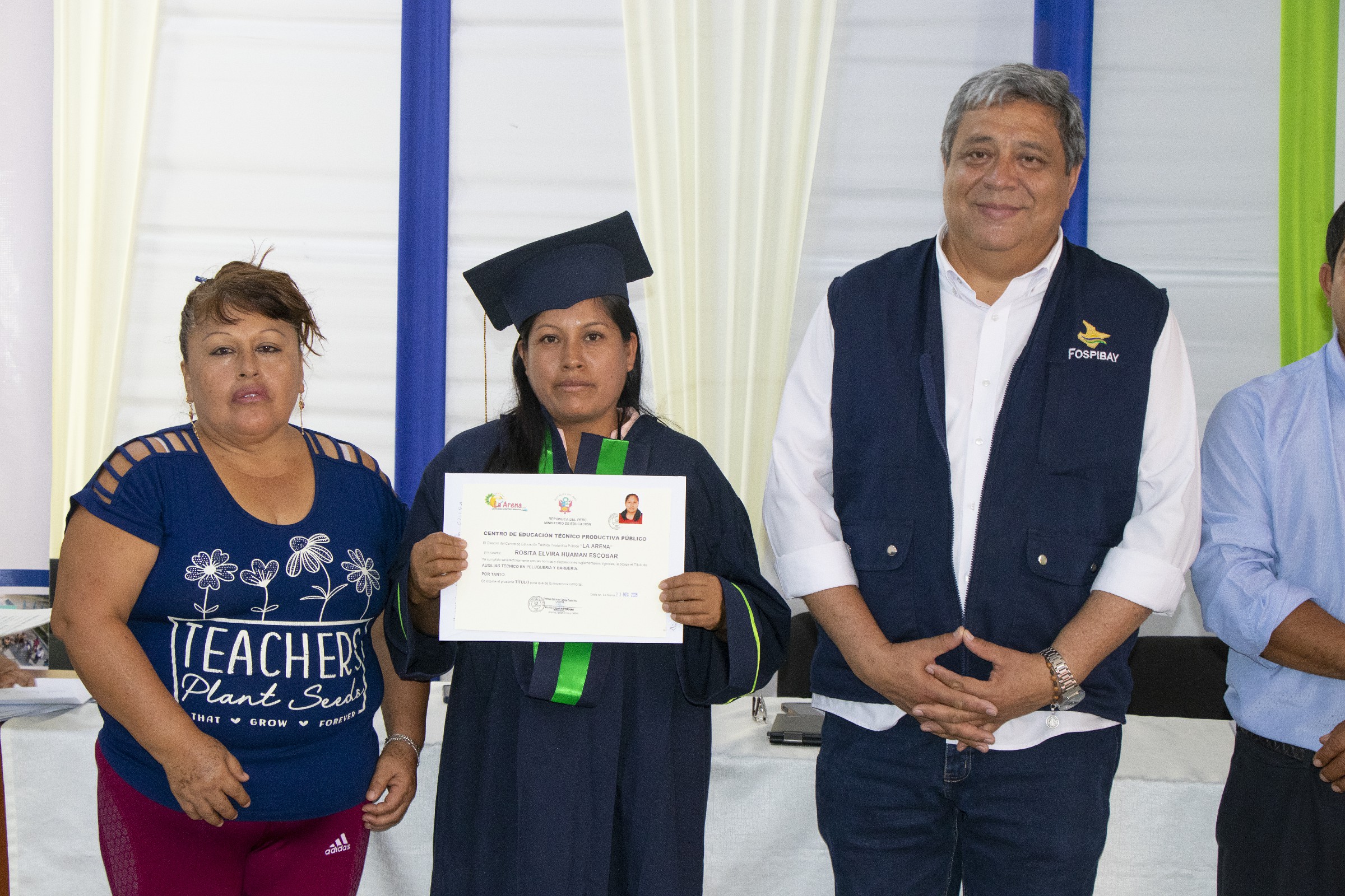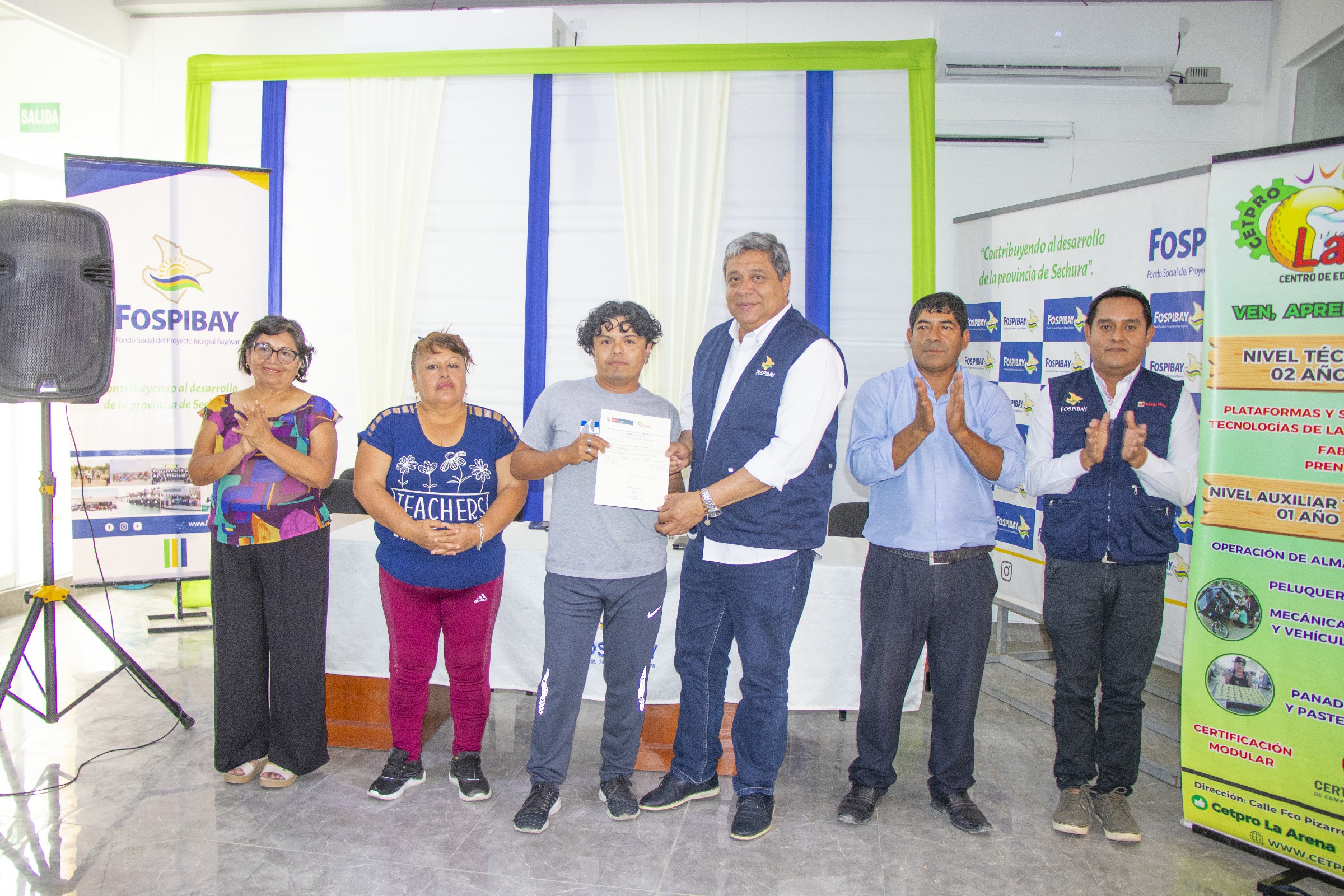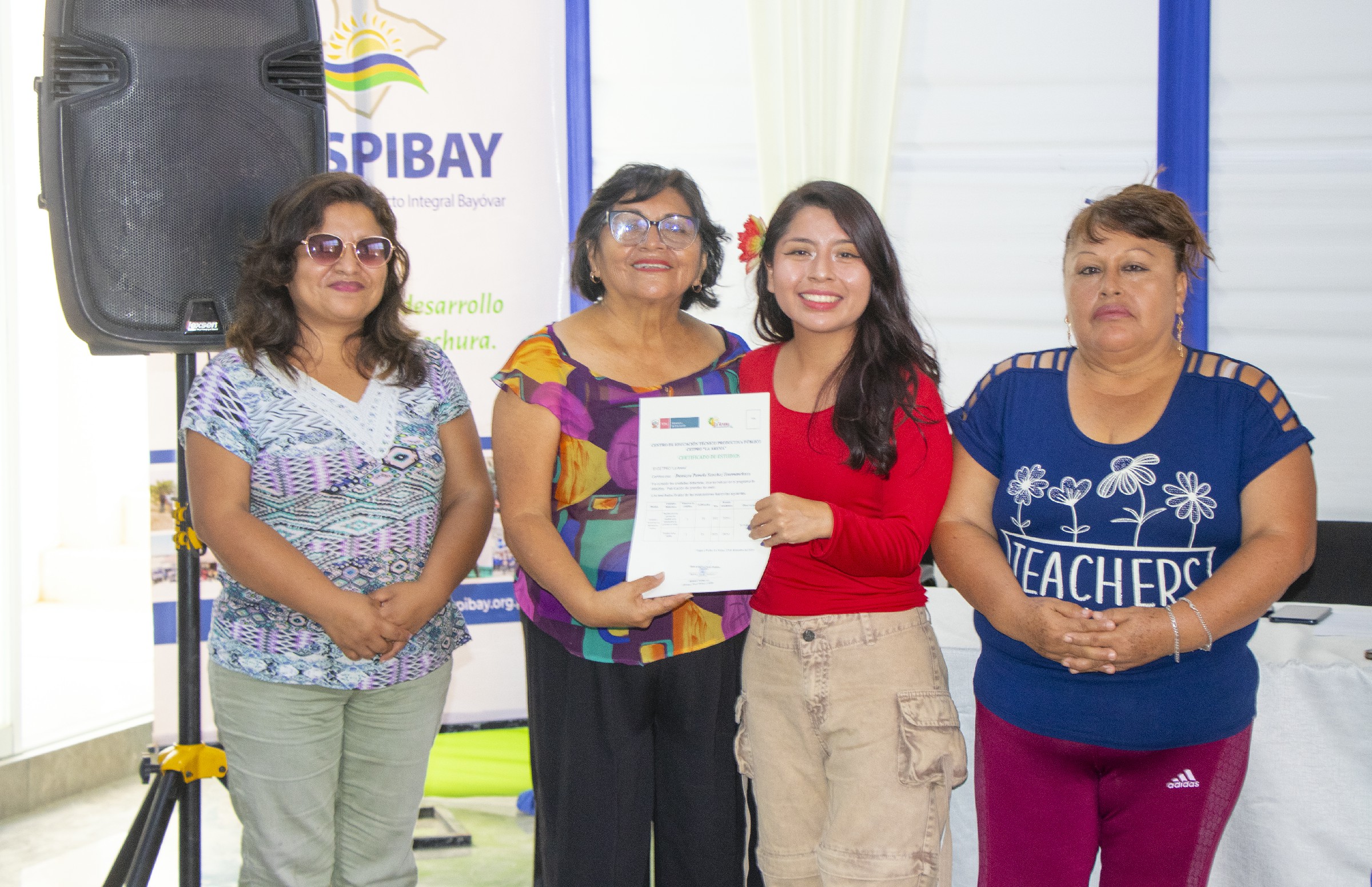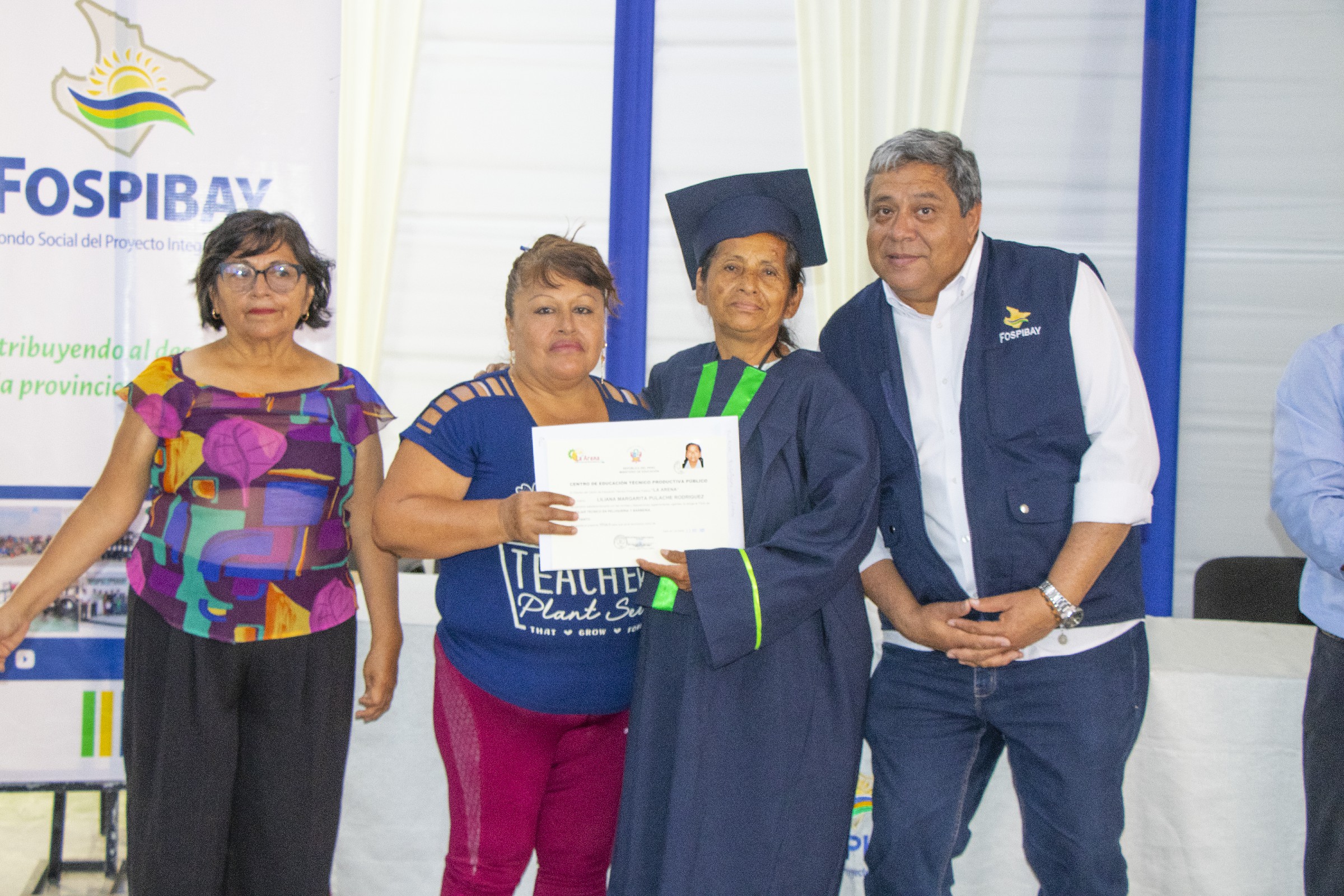 La ceremonia contó con la participación del gerente y equipo técnico del FOSPIBAY, autoridades locales, Miski Mayo, el equipo técnico del proyecto y, principalmente, de los beneficiarios, quienes expresaron su satisfacción y agradecimiento por esta valiosa oportunidad de formación que contribuirá a mejorar sus condiciones laborales y económicas.