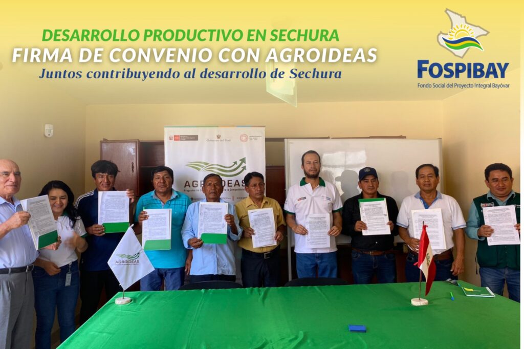 Las asociaciones productivas de Sechura y Agroideas firmaron el convenio de adjudicación de recursos no reembolsables que otorga el programa de compensaciones para la competitividad del Ministerio De Desarrollo Agrario y Riego, cuya partida permitirá la ejecución de 04 planes de negocio para el mejoramiento de la producción de miel de abeja que beneficiará a más de 134 apicultores de la provincia.