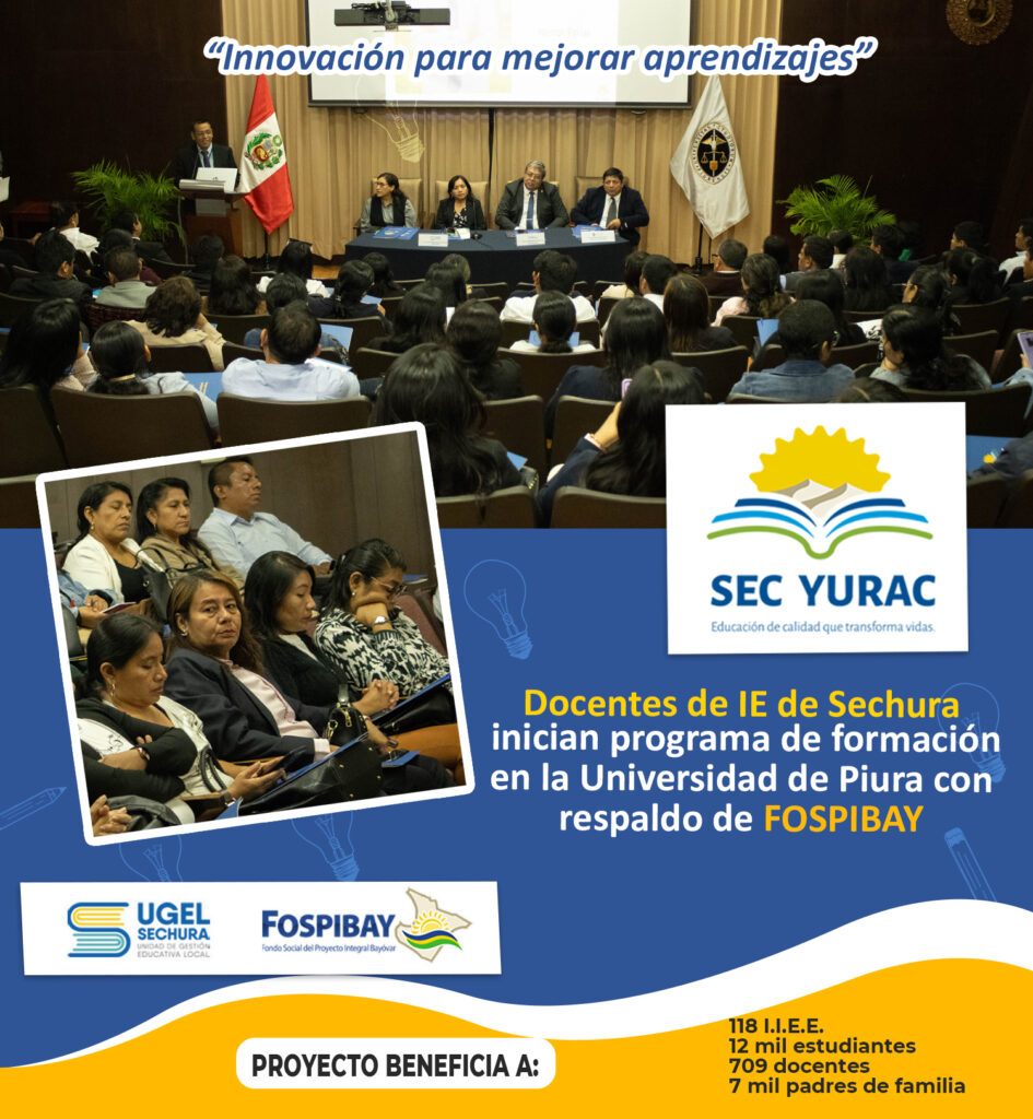 📚Este diplomado tiene como objetivo fortalecer las competencias pedagógicas, disciplinares y digitales de los docentes del área de Comunicación y Matemática de la UGEL Sechura, mediante una formación contextualizada, activa y articulada al Currículo Nacional. El programa se desarrolla como parte del proyecto Sec Yurac, que interviene en 118 instituciones educativas de Sechura, impactando en más de 9 mil estudiantes de los tres niveles de la educación básica.