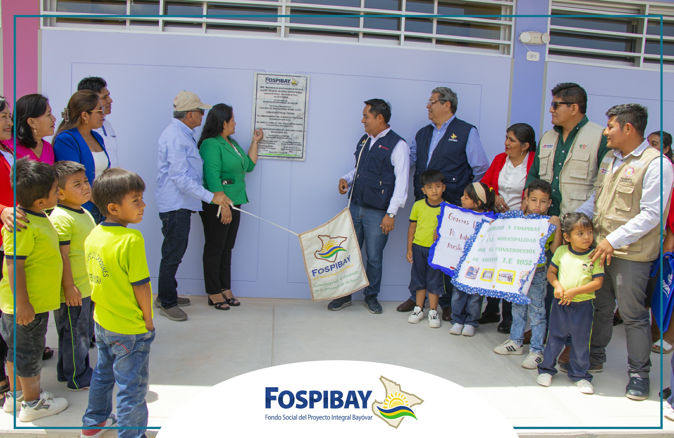 La ceremonia contó con la participación de los miembros del Directorio del FOSPIBAY, presidido por la alcaldesa provincial de Sechura, Carmen Morales Loro; el Ing. José Adrianzén, representante del Ministerio de Energía y Minas; Joel Chunga, en representación de Miski Mayo; asimismo, , autoridades locales, la directora de la UGEL Sechura, docentes, madres de familia, el equipo técnico del FOSPIBAY y la comunidad educativa en general. ![]()