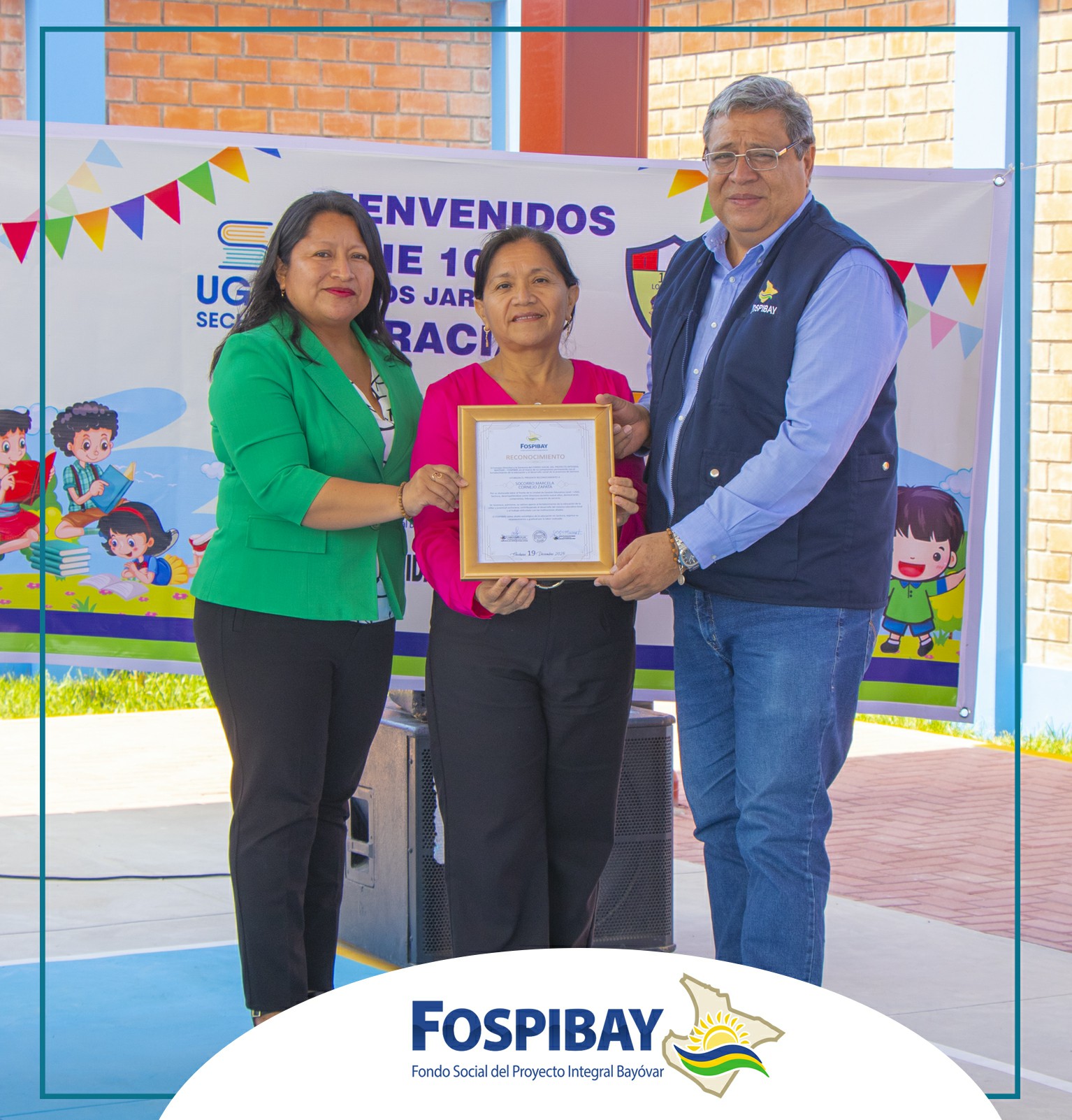 Durante la ceremonia, el FOSPIBAY otorgó un importante reconocimiento a la directora de la UGEL Sechura, en mérito a sus nueve años de liderazgo y compromiso permanente con la educación de la provincia, así como por su valioso rol como aliada estratégica del FOSPIBAY en el fortalecimiento de las condiciones educativas y el cierre de brechas en beneficio de la niñez sechurana. ![]()
