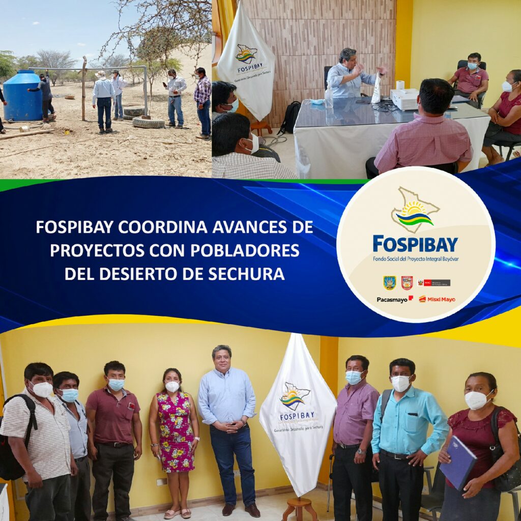 Como se recuerda, ambos proyectos están contemplados dentro del Plan de Inversiones del FOSPIBAY, asimismo, el proyecto de perforación de los cinco pozos en el desierto de Sechura fue financiado por el FOSPIBAY y actualmente abastecen a la población mediante motobombas provisionales.