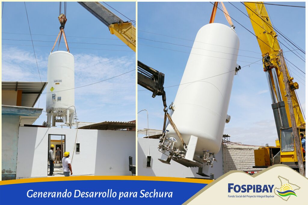 Cumpliendo con lo señalado por el Gerente del FOSPIBAY, Ing. Segundo Reusche Castillo, el Fondo Social cumple con realizar el cambio del tanque criogénico que estuvo instalado en el Establecimiento de Salud de Sechura desde el pasado mes de julio en que ha venido funcionando en óptimas condiciones brindando satisfactoriamente oxígeno medicinal a los pacientes con síntomas moderados internados en la sala COVID permitiendo la recuperación de muchos pobladores de Sechura y de otras provincias de la región Piura en el último semestre del año 2020 en el marco del Programa “Por un Sechura Sin Covid-19”.