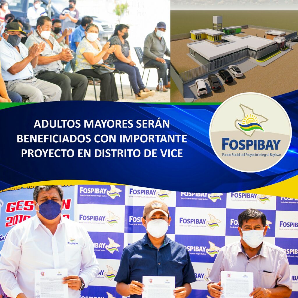 El FOSPIBAY y la Municipalidad distrital de Vice firmaron un importante convenio para la ejecución del proyecto: “Creación del centro integral de atención al adulto mayor, en el asentamiento humano San José del Distrito de Vice” cuyo expediente técnico viene siendo elaborado por la Municipalidad de Vice y se ejecutará como parte del Plan de inversiones del FOSPIBAY.