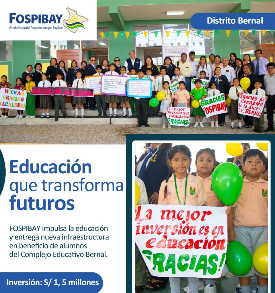 FOSPIBAY IMPULSA LA EDUCACIÓN Y ENTREGA MODERNA INFRAESTRUCTURA A LA I.E. COMPLEJO BERNAL