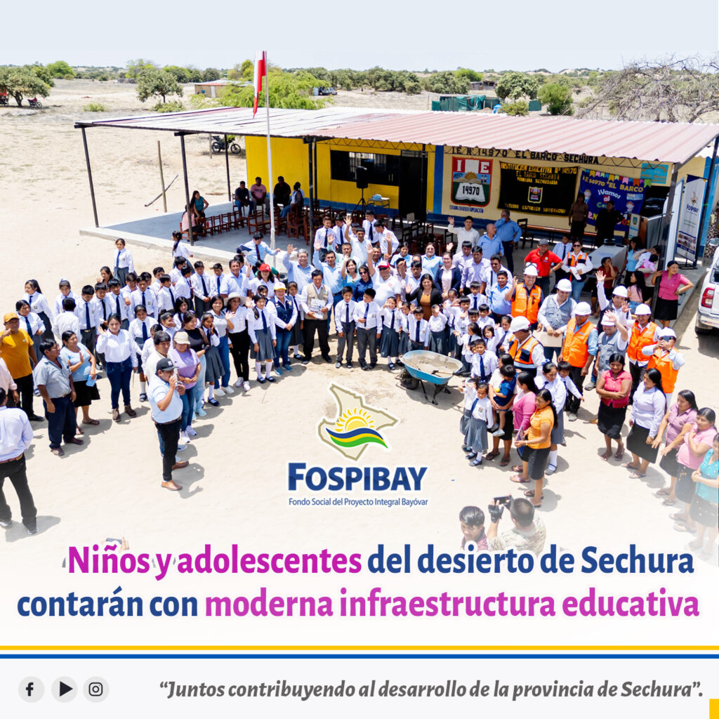 Este proyecto cuya unidad formuladora es el municipio provincial de Sechura, que ha estado a cargo del respectivo expediente técnico, será financiado por el FOSPIBAY con un monto aprobado de 6 millones 698 mil 934 soles con un plazo de ejecución de ocho meses (240 días calendario) y comprende la construcción de ocho aulas para el nivel primaria y secundaria, biblioteca, aula de innovación pedagógica, salón de usos múltiples, cocina, servicios higiénicos, sala de profesores, dirección, cuarto de limpieza, laboratorios, tópico, residencia docente, equipos de sistema de energía solar, grupo electrógeno, cerco perimétrico, portadas de ingreso, patio, cerco de malla metálica, cisterna, tanque elevado, veredas de concreto, evacuación pluvial, entre otros.