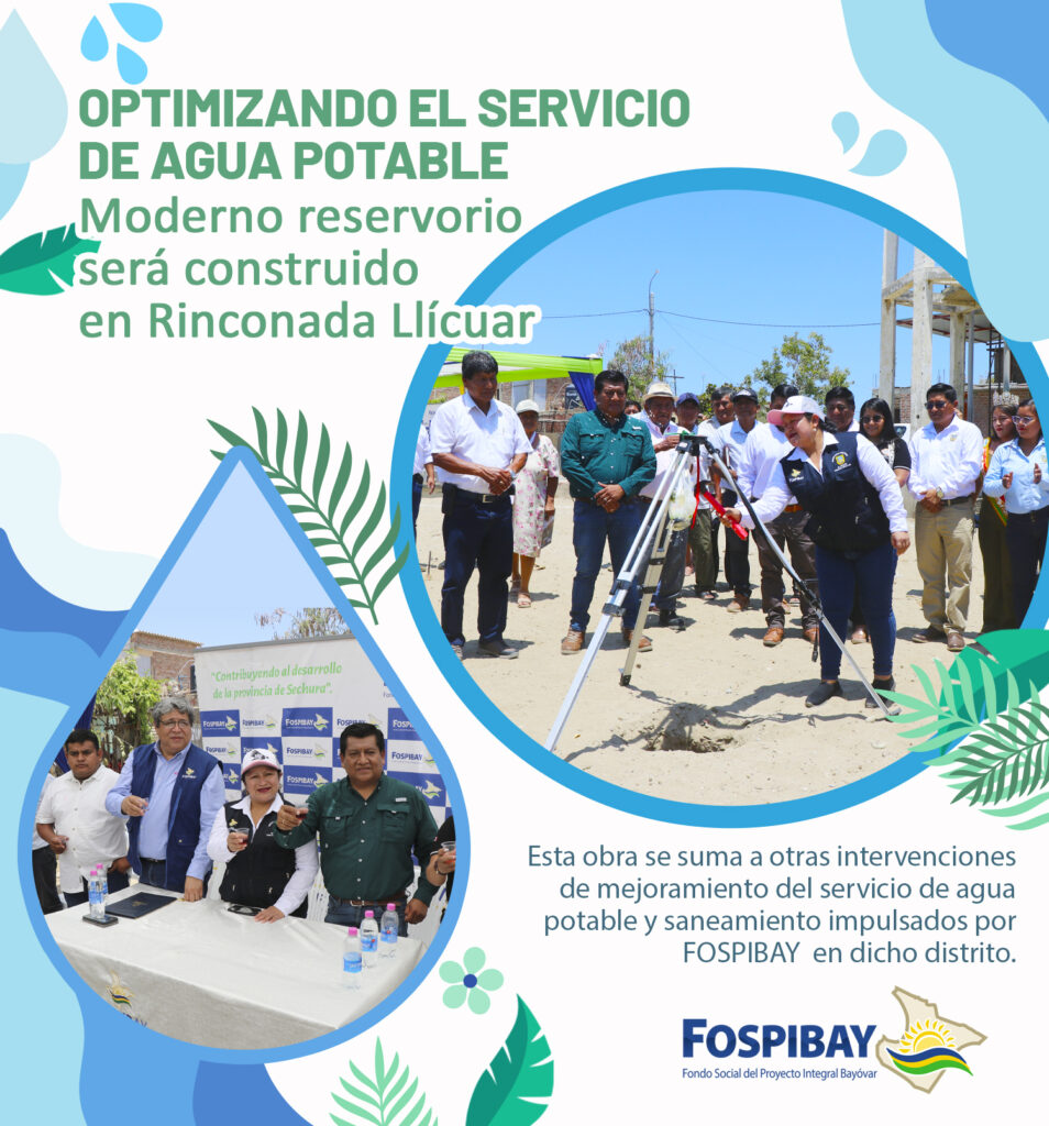Gracias al financiamiento del FOSPIBAY el distrito de Rinconada Llícuar contará la construcción de un reservorio elevado de una capacidad de 300 m³, que permitirá optimizar el servicio de agua potable ya que esta infraestructura reemplazará al actual pozo de 28m³, el cual ya cumplido su ciclo de operatividad.