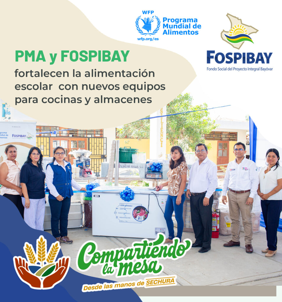 El Programa Mundial de Alimentos y el Fondo Social FOSPIBAY entregaron equipamiento y menaje a 10 instituciones educativas de la provincia de Sechura. Esta acción se enmarca en el proyecto «Compartiendo la Mesa desde las Manos de Sechura» , en apoyo al programa Wasi Mikuna del MIDIS.
