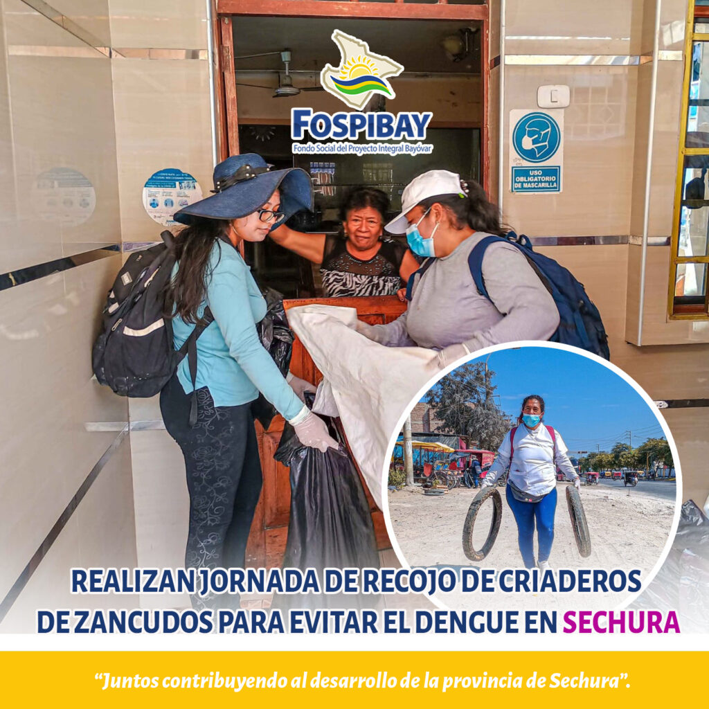 Como parte de las acciones de prevención frente a una posible temporada de lluvias y con el fin de evitar casos de dengue se realizó una jornada de recojo de criaderos de zancudos en el AA.HH. Túpac Amaru II, en el marco del programa “Sechura sin dengue, cuidad saludable” en trabajo articulado entre el Establecimiento de Salud, Municipalidad de Sechura y FOSPIBAY.