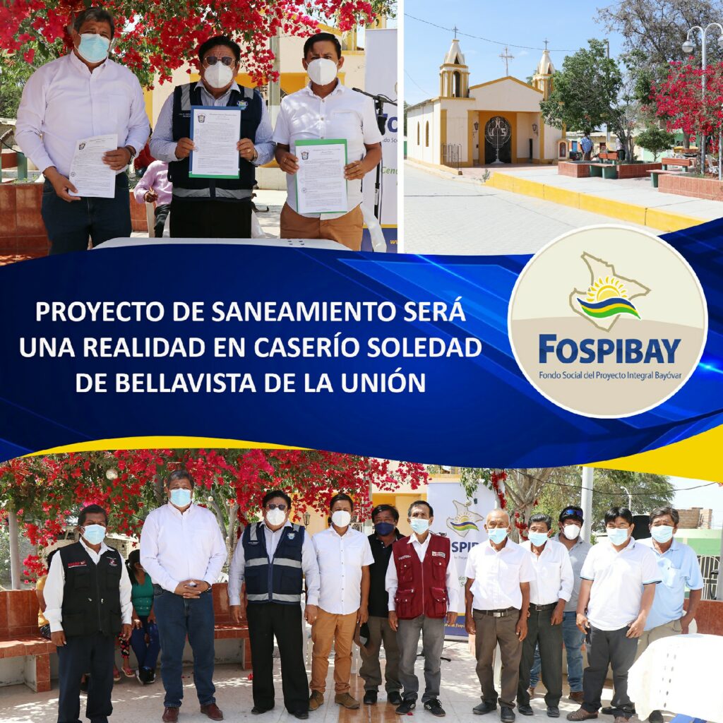 Luego de las gestiones realizadas ante las autoridades competentes con el apoyo del equipo técnico del FOSPIBAY, la Municipalidad distrital de Bellavista de La Unión concluyó la elaboración del expediente técnico del proyecto de “Mejoramiento de los servicios de Saneamiento y Planta de Tratamiento de Agua residuales en el Caserío de Soledad” cuya ejecución será financiada por el FOSPIBAY.