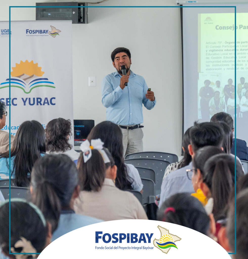 La Unidad de Gestión Educativa Local (UGEL) Sechura realizó la socialización del Proyecto Educativo Local (PEL) al 2036 a los directivos de las instituciones públicas y privadas de la provincia, reforzando su apuesta por una educación innovadora, participativa y orientada al desarrollo social inclusivo. Este instrumento estratégico fue impulsado por el Proyecto Educativo SEC YURAC, desarrollado por el Fondo Social del Proyecto Integral Bayóvar (FOSPIBAY) en alianza con la UGEL.